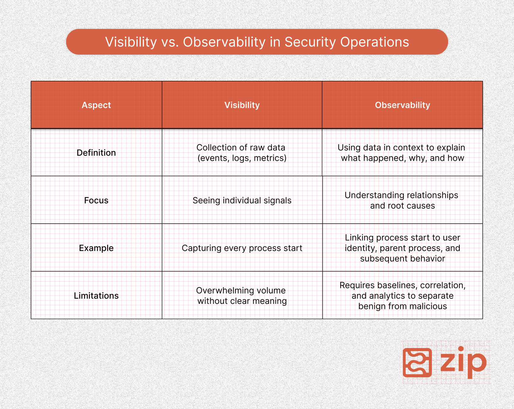 It is important to distinguish visibility from observability. Visibility is the collection of raw data (you can see the events), while observability lets you use the raw data in context (you can explain what happened and why).